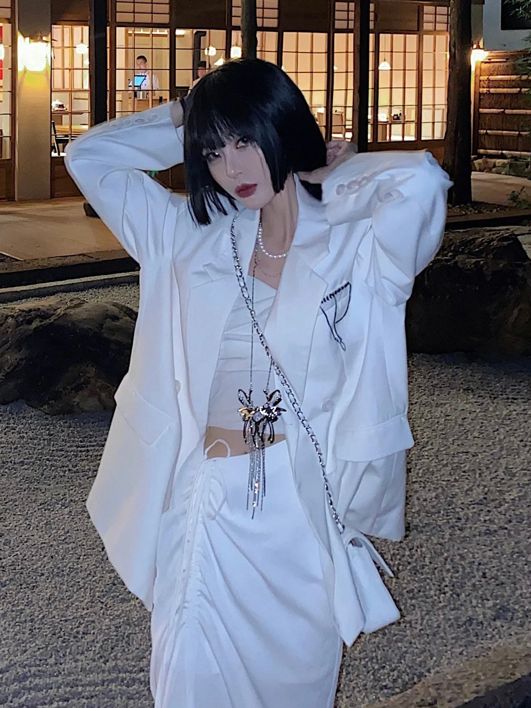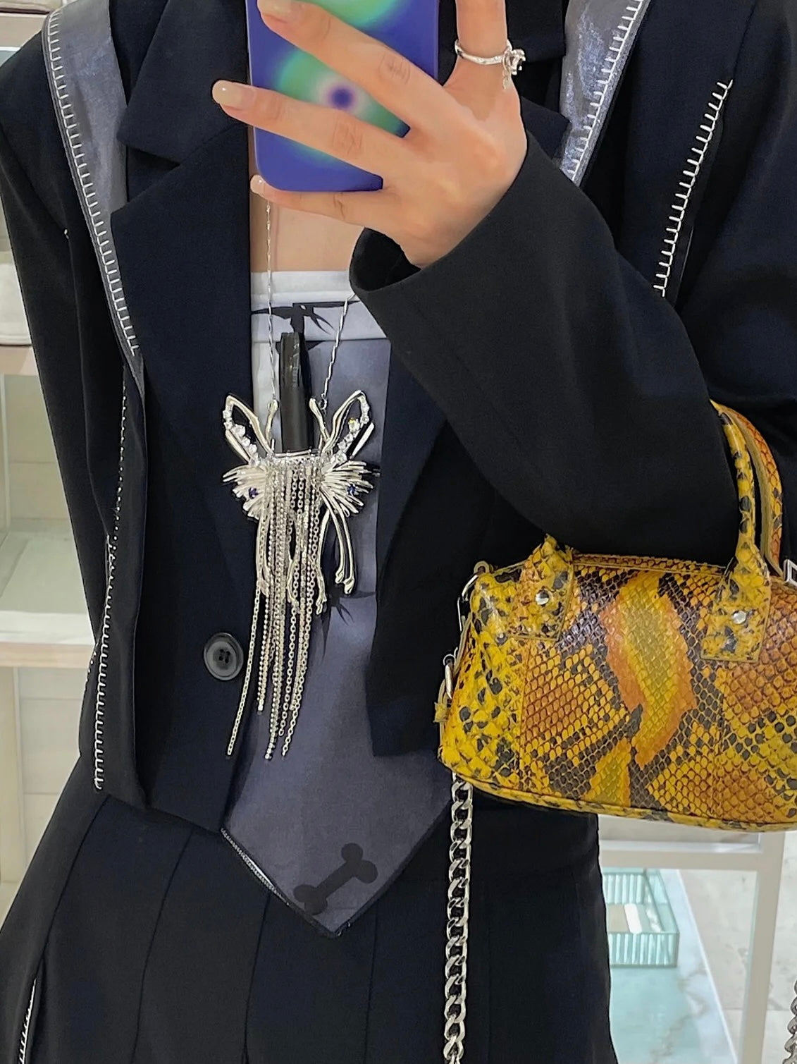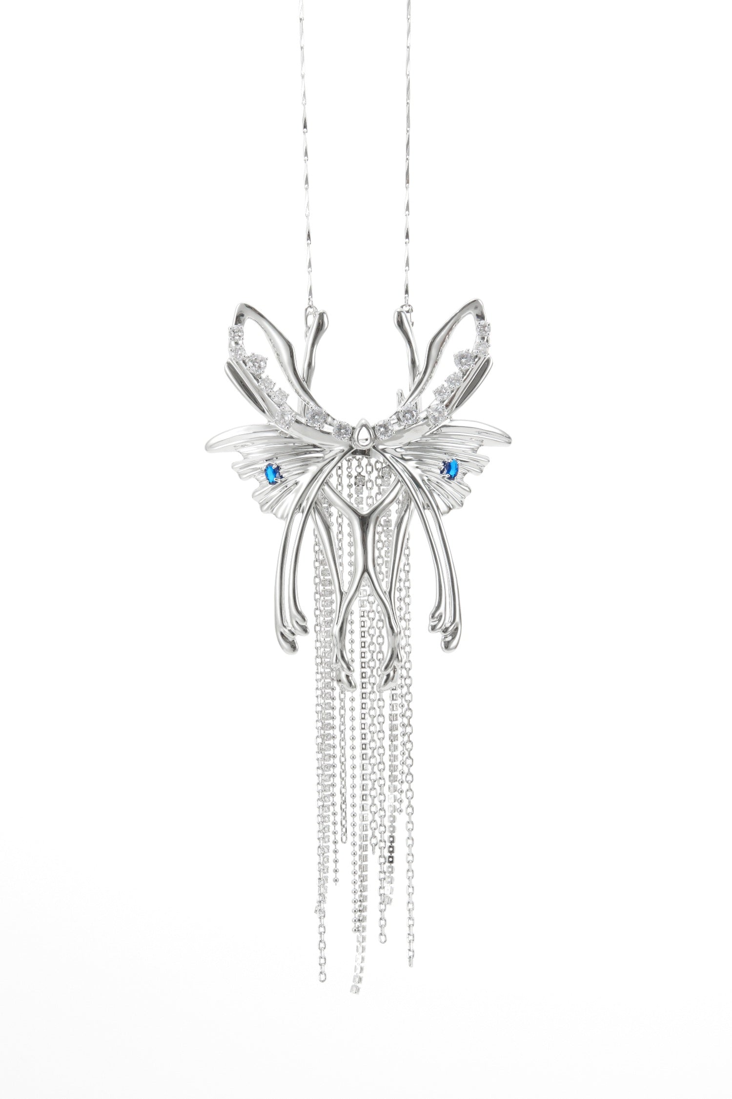 This is a detachable jewelry piece. It composed by 3 parts: the multi-layer necklace, butterfly body and tassels. The main style of wearing is necklace and body chains, but you can play with the multi-layer necklace and explore more ways to wearing it.